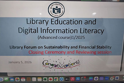 စာကြည့်တိုက်ပညာ အဆင့်မြင့်သင်တန်းနှင့် စာကြည့်တိုက်ဖိုရမ် 📚ကို ၅.၁.၂၀၂၆ နေ့တွင်အောင်မြင်စွာပြီးစီးခဲ့ပါသည်။